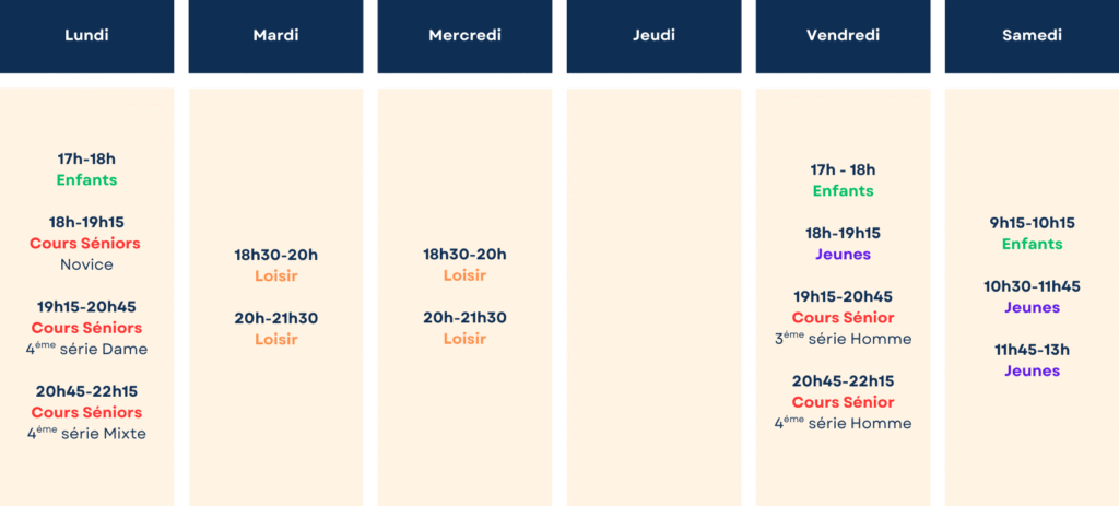 - Possibilité d’aller sur les créneaux Loisir, s’il reste de la place (maxi 4 par court).