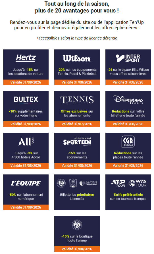 Pour obtenir toutes les conditions d’accès et informations nécessaires aller directement dans la rubrique « avantages » sur Ten’Up.